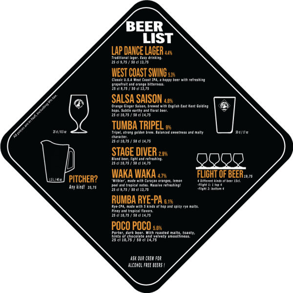 Je kunt je om 16:30 melden bij de bar van Swinging Old Lady. Met een groep van minimaal 4 en maximaal 10 personen krijg je een leuke rondleiding door de brouwerij en zie je hoe de 8 verschillende biersmaken gebrouwen worden. Met ongeveer 15 minuten is de tour afgelopen en kom je weer terug in de bar voor het leukste deel: de bierproeverij! Je krijgt 4 verschillende biertjes, een zogeheten “Flight of beer” waarbij je kunt kiezen uit ‘de bovenste 4’ van de menukaart of de ‘onderste 4’ van de menukaart. Uiteraard krijg je advies over de smaken dus je kunt zelf een goede keuze maken van welke biertjes je het lekkerste zult vinden. Als snackje krijg je er een heerlijke zuurkoolbitterbal bij.