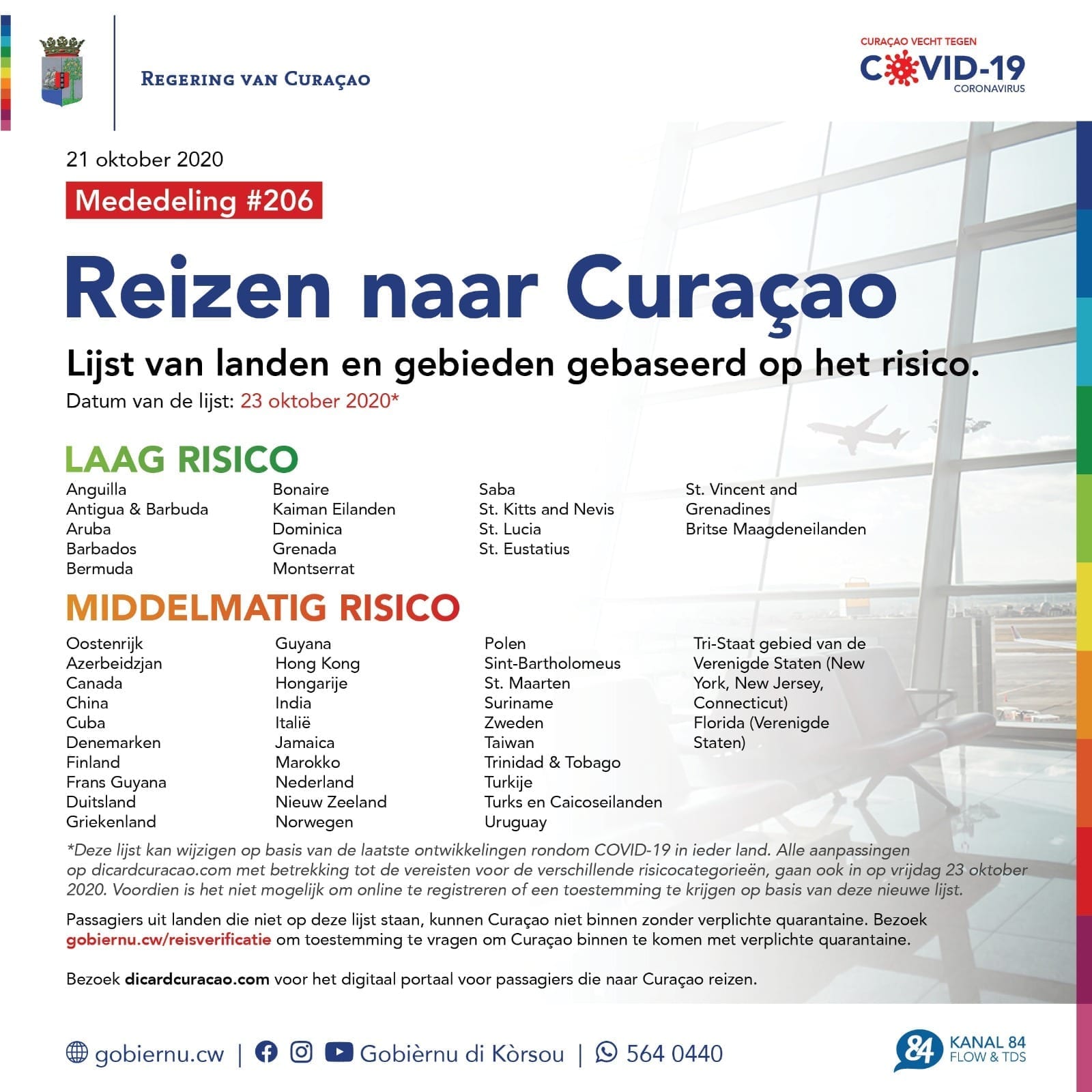 Hierbij geldt uiteraard wel dat het land van herkomst door Curacao gekenmerkt moet zijn als ‘laag risico’ of ‘middelmatig risico’. O.a. Nederland en Duitsland worden gezien als land met middelmatig risico, wat betekent dat je welkom bent met een negatieve uitslag van een PCR-test.